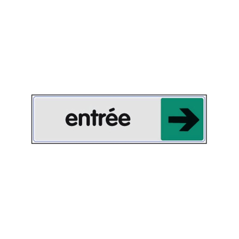 En plexiglas, textes et logos imprimés au verso, aspect brillant durable et nettoyage facile. Fixation par adhésifs puissants pré-positionnés. Conforme aux normes AFNOR. Dimensions : 170 x 45 mm Coloris : fond argent, textes et logos noirs, logo sur fond couleur