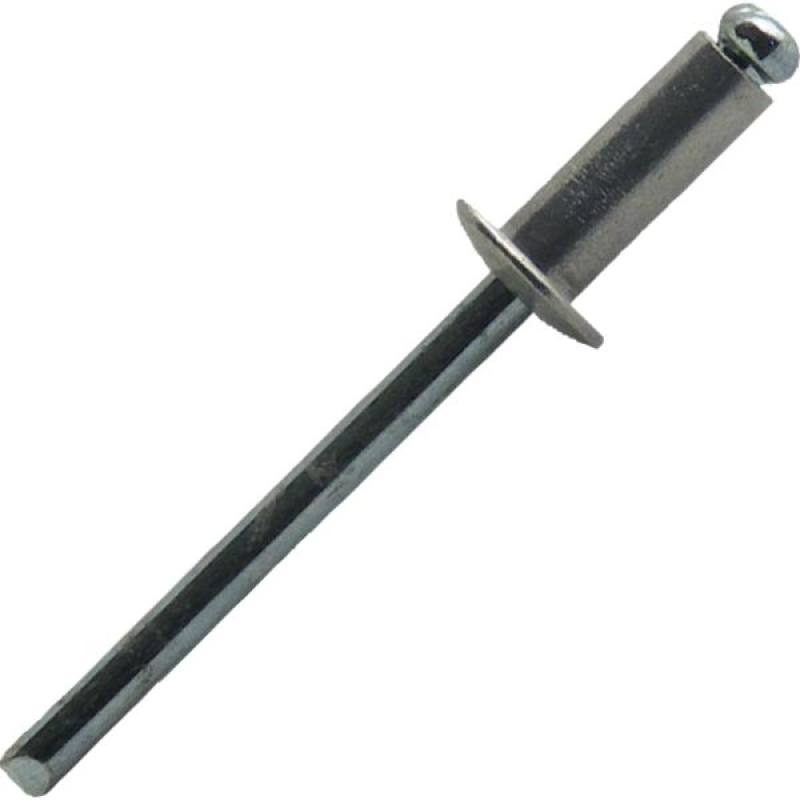 Rivet aveugle standard à tête plate. Corps aluminium et tige acier. Ø perçage : 3,1 pour rivet 3 mm - 3,3 pour rivet 3,2 mm - 4,1 pour 4 mm - 4,9 pour rivet 4,8 mm